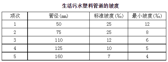 2、生活污水塑料管道的坡度必須符合設計要求或下表要求。