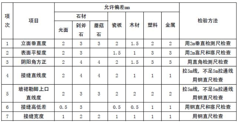 東莞酒店裝修驗收標準如下